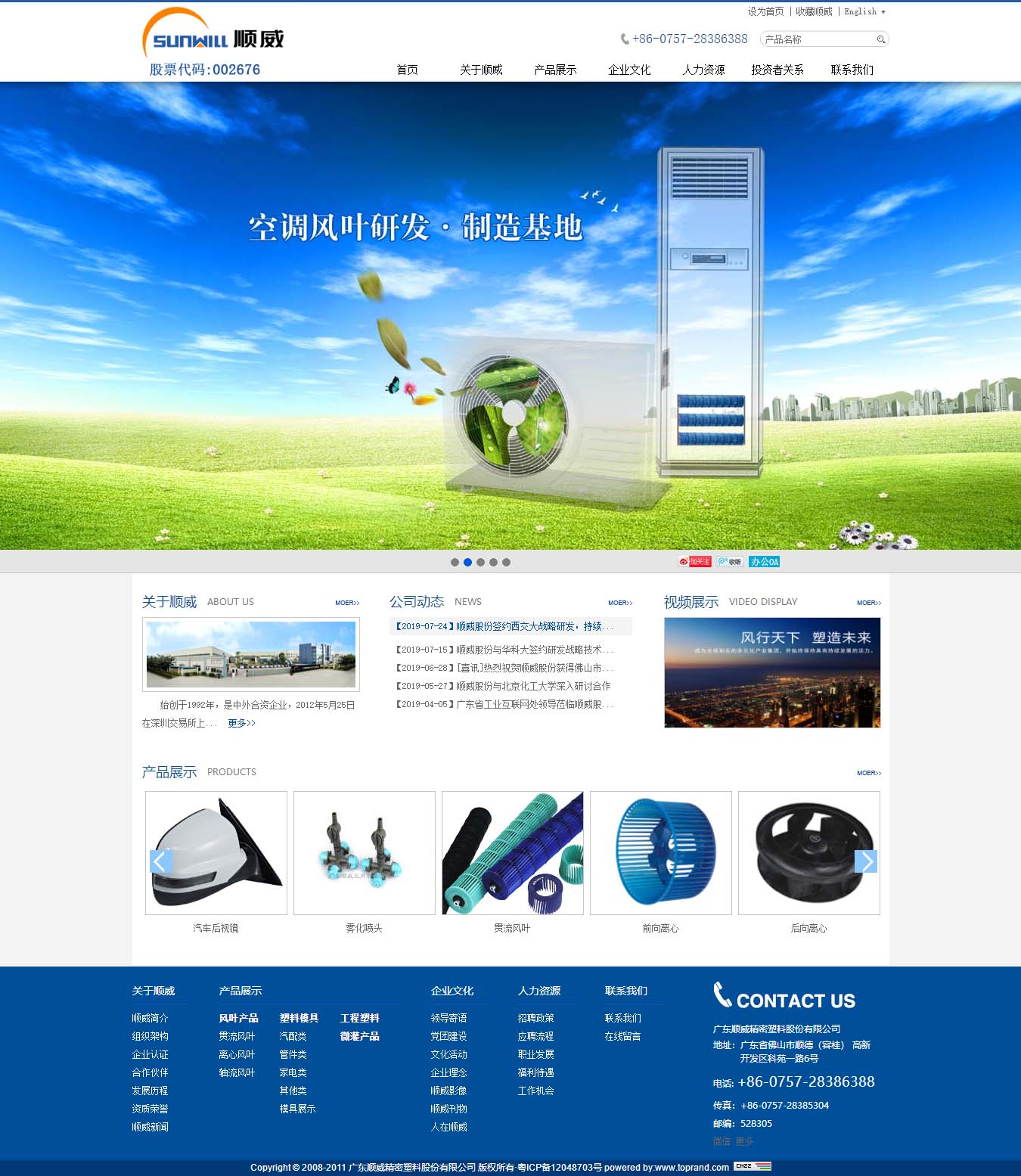 <meta name="description" content="始创于1992年的广东顺威精密塑料股份有限公司，是一家国家高新技术企业，2012年登陆A股市场，股票代码：002676。公司获得“2010-2018年度广东省诚信示范企业”称号。公司拥有空调风机工程技术研究开发中心、被广东省认定：企业技术中心、广东省工程技术研究开发中心，2018年被佛山市拟认定为“细分行业龙头企业”。 公司拥有空调风叶、精密模具、汽车配件、新材料、智能家居五大产品系列，在顺德、昆山、武汉、芜湖、青岛、泰国等地" />